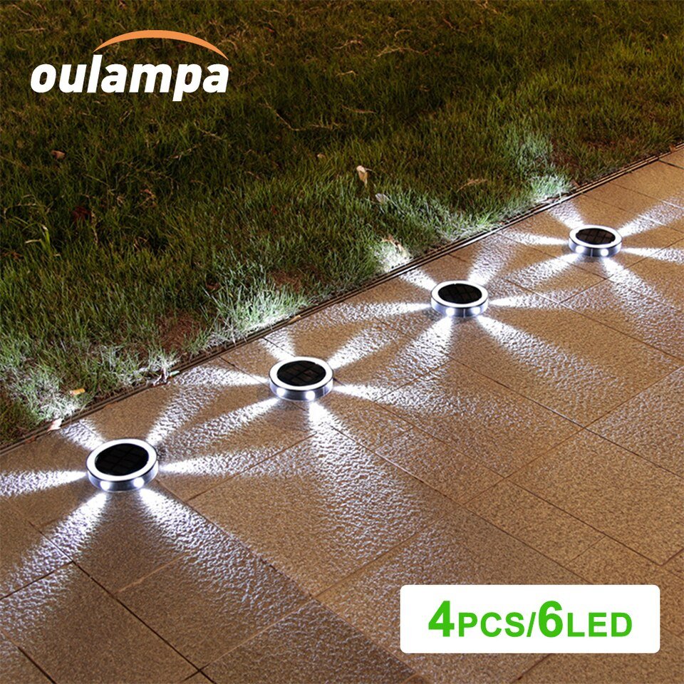 4PCS 6LED Outdoor Solar Ground Light for Path Lawn Stairs Patio Driveway Yard Waterproof IP65 Garden Landscape Decoration Lamp